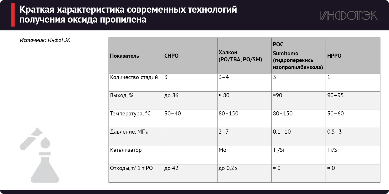 Для российских компаний многие западные нефтехимические технологии в настоящее время недоступны. При этом дефицит окиси пропилена в РФ составляет более 100 тыс. т в год. Поэтому интерес представляет возможность получения технологий производства данного продукта из Азии.