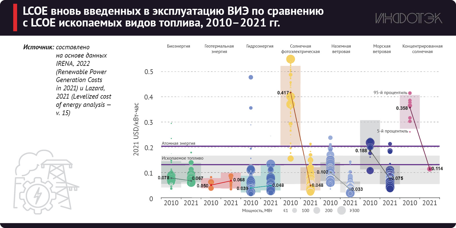 По данным IRENA, большинство новых проектов в сфере ВИЭ уже сегодня производят электроэнергию дешевле, чем угольные электростанции в странах G20. Это подтверждает тенденцию к снижению стоимости ВИЭ и их растущую конкурентоспособность на мировом рынке.