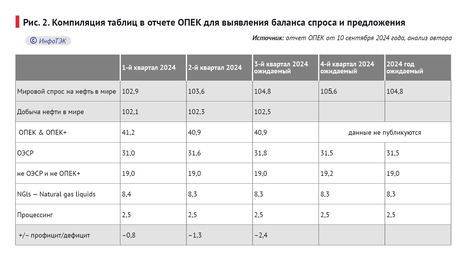 Компиляция таблиц в отчете ОПЕК для выявления баланса спроса и предложения представлена ниже: