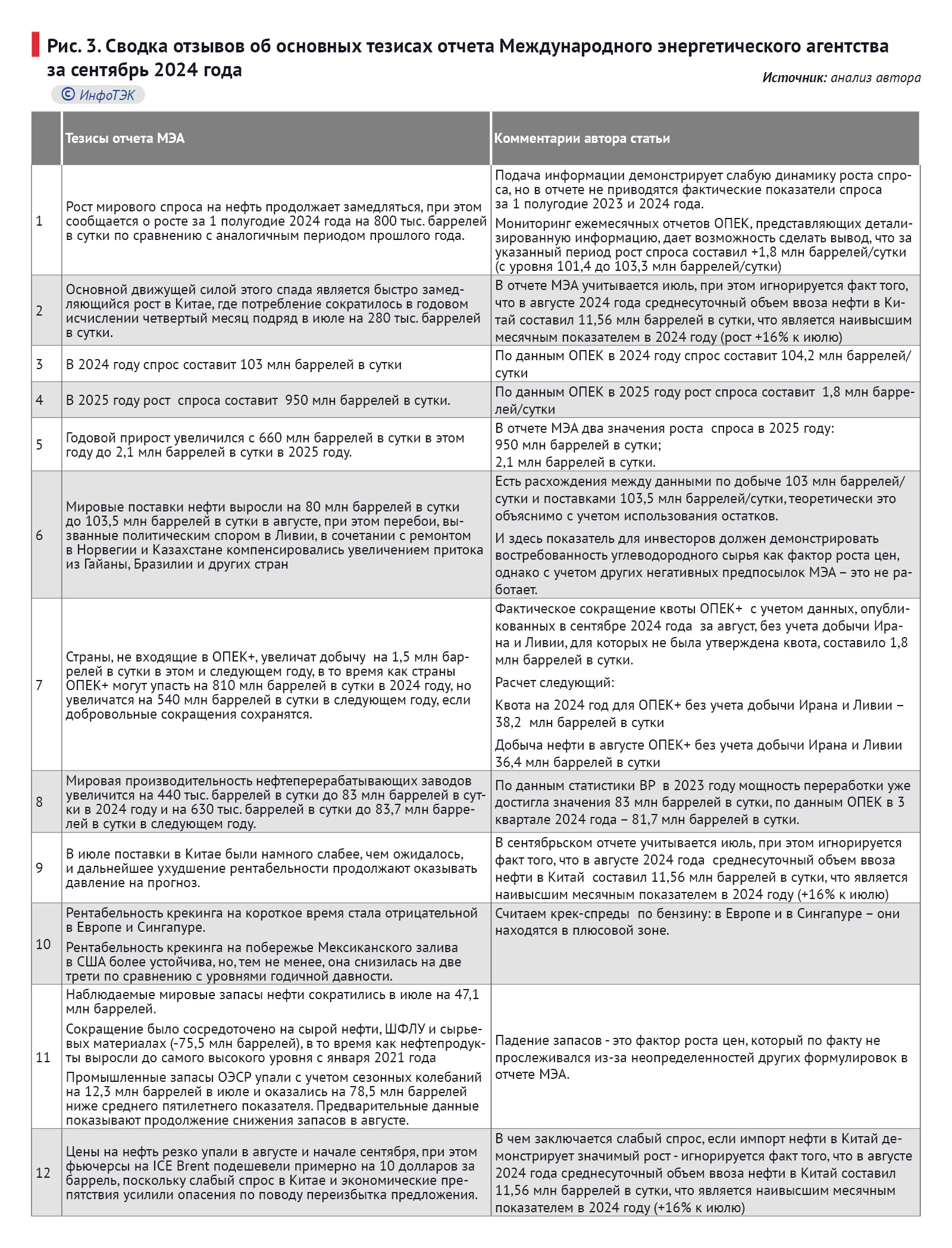 Сводка отзывов о основных тезисах отчета Международного энергетического агентства за сентябрь 2024 года: