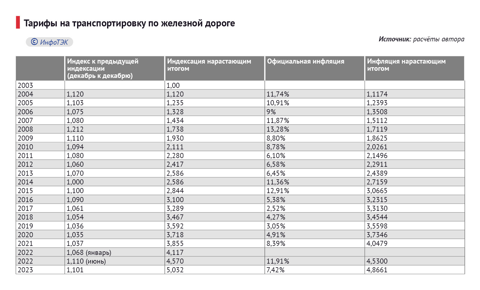 Многолетний анализ показывает, что хотя рост тарифов на транспортировку по железной дороге немного и обогнал официальную инфляцию, но оставался в должных рамках.