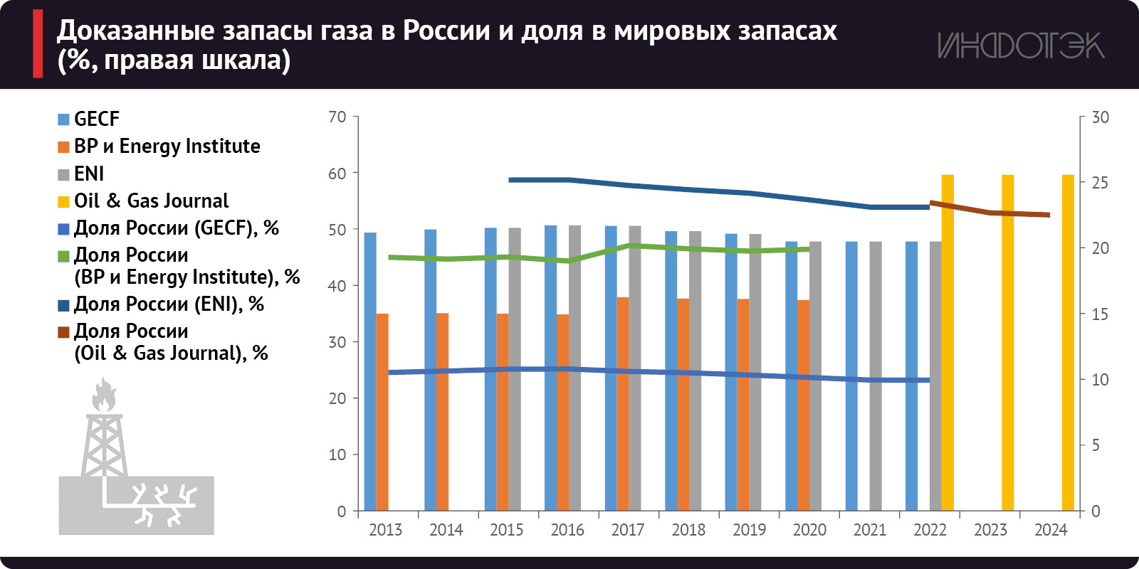 В топливно-энергетическом балансе России газ играет ключевую роль – на его долю приходится более 54% энергопотребления (оценка за 2023 год по Wood Mackenzie).