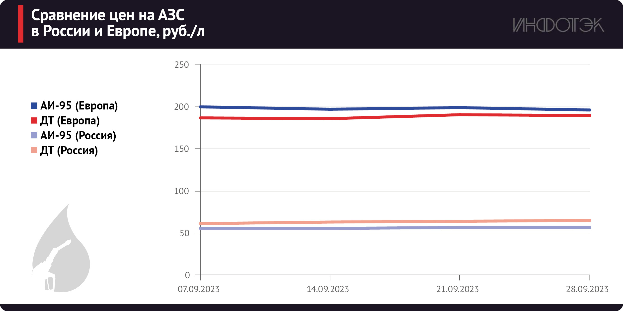 Удивительным образом повышательная динамика сохраняется и у нас, и в недружественных странах. Видимо, даже с учетом санкций эти рынки продолжают оказывать существенное влияние на внутренний рынок России (см. рис. 4). Однако уровень цен на топливо у нас значительно привлекательнее, чем в Европе, что должно создавать дополнительные стимулы для развития экономики.