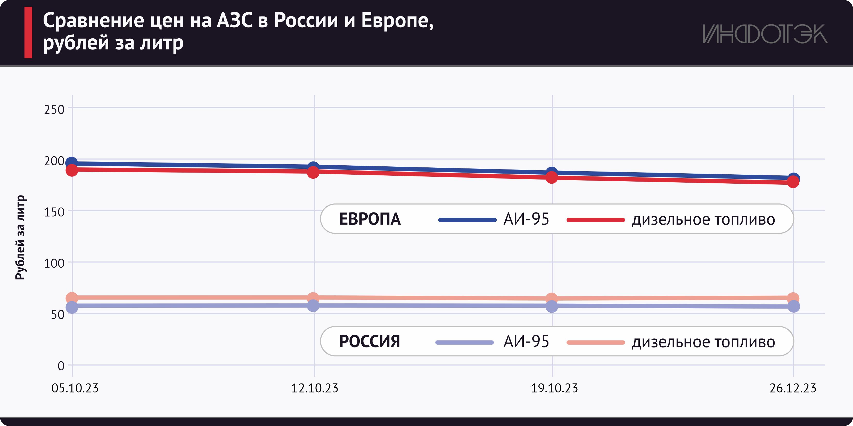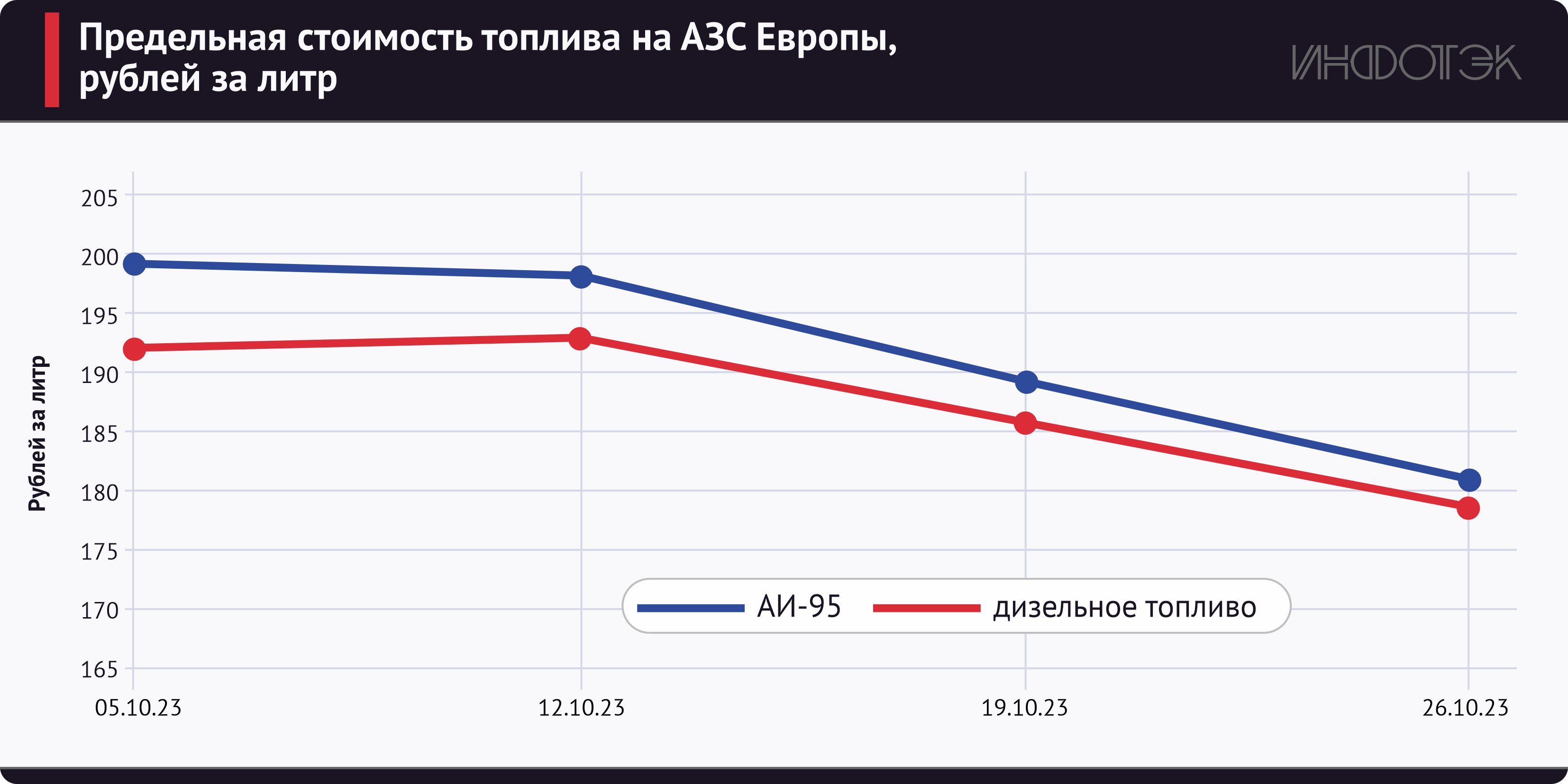 На европейских рынках в связи с окончанием высокого сезона и из-за уменьшения потребления на фоне значительного сокращения деловой активности закрепилась тенденция к снижению стоимости топлива (см. рис. 2). Несмотря на изменения курса рубля, цена топлива ушла с максимальных значений в районе 200 рублей за литр (средняя стоимость бензина на европейских АЗС в прошлые месяцы), снизившись примерно на 10%, до 180 рублей за литр. С учетом уменьшения стоимости топлива в России, европейский рынок оказался еще более привлекательным для поставщиков (цены на нем в три раза выше, чем в РФ).