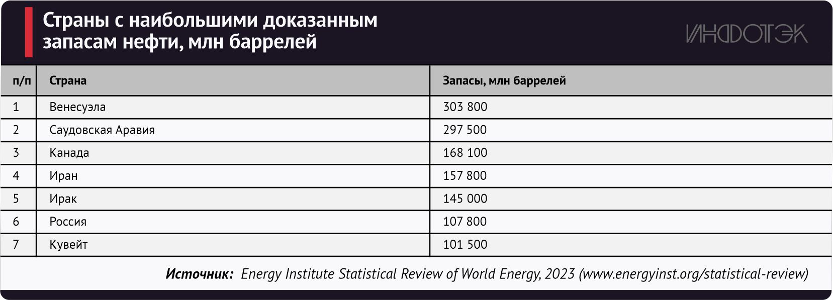 Доказанные запасы нефти в Иране (табл. 1) составляют порядка 157 800 млн баррелей (9,1% от мировых запасов).