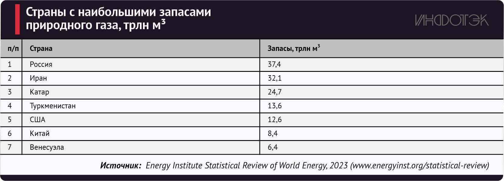 В 2022 году доказанные запасы природного газа в Иране (табл.2) составляли 32,1 трлн куб. м., что эквивалентно 17,1% мировых запасов. По этому показателю Иран занимает второе место в мире после России.