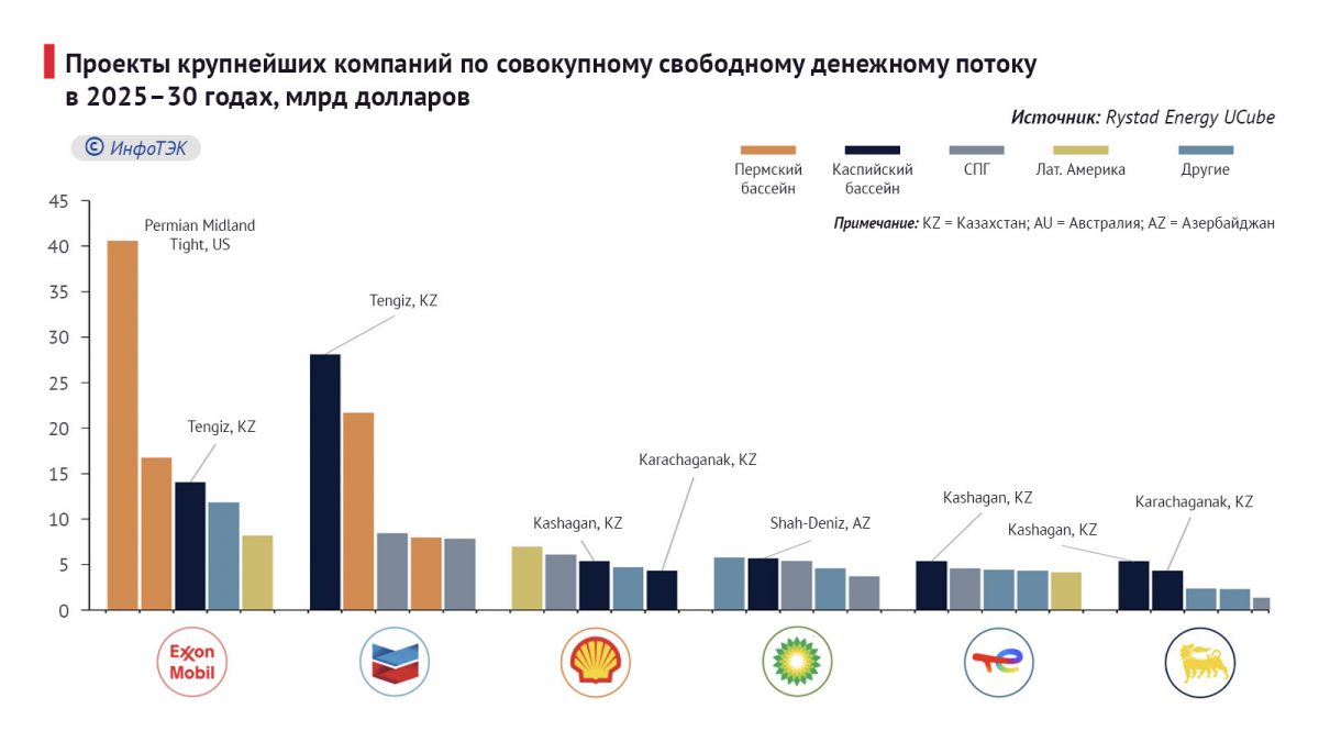Недавно норвежская аналитическая и консалтинговая компания Rystad Energy опубликовала небольшой обзор, согласно которому Каспийский регион для мейджоров становится главным генератором кэша – чистого денежного потока (приводил краткий анализ цифр Rystad Energy в телеграм-канале, представив расчеты по трем крупным "казахстанским" проектам).