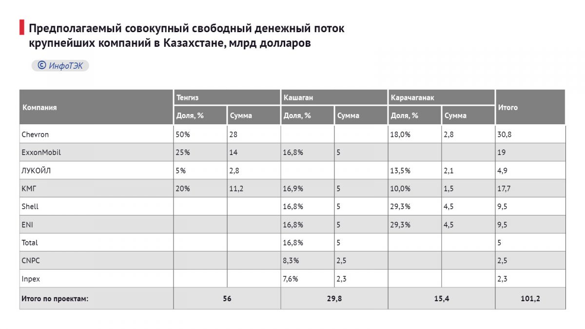 Для другой американской корпорации ExxonMobil Тенгизский проект принесет, соответственно, $14 млрд, став третьим по величине крупным проектом в глобальном масштабе.