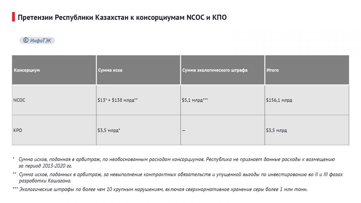 К консорциумам NCOC и КПО, где в основном разношерстный состав акционеров, у республики есть довольно серьезные претензии: