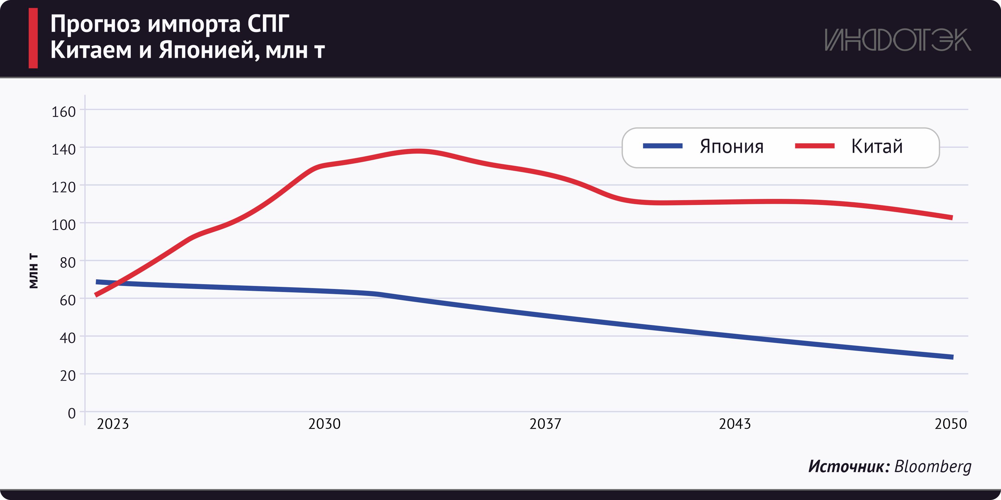 Поэтому, учитывая, что основной рост спроса на газ сконцентрирован в приморских районах Китая, более перспективным направлением увеличения поставок российского газа в КНР является СПГ. Напомним, что мощности СПГ-терминалов в Китае к 2050 году составят около 340 млн т, что в три раза выше уровня 2020 года.