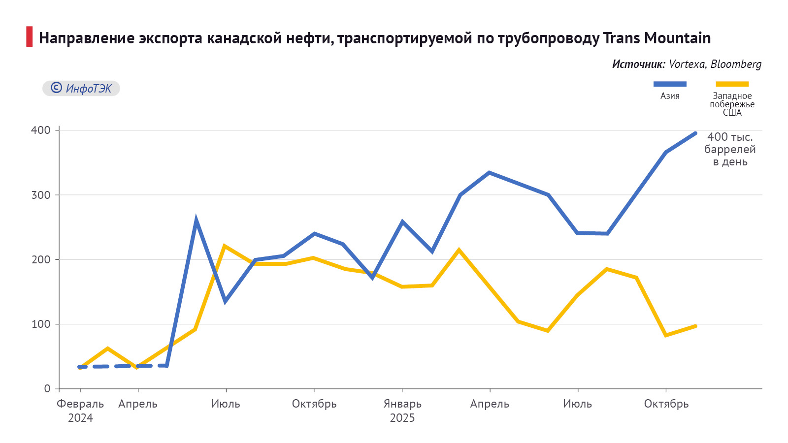 Расширенный TMPL, запущенный в мае 2024 года (конечная стоимость проекта составила 24 млрд долларов), доводит нефть до морского терминала в городе Бернаби, откуда она может поставляться в том числе в Азию. Результат не заставил себя долго ждать: в мае 2025 года Reuters сообщило, что именно Китай стал основным потребителем канадской нефти, экспортирующейся через TMPL. При этом оператор нефтепровода, Trans Mountain Corp., сообщал о возможном решении дополнительно увеличить пропускную способность проекта еще на 300 тыс. баррелей в сутки. А власти Альберты призывают строить еще более мощный нефтепровод в сторону северной части Британской Колумбии – потому что это полностью вписывается в логику необходимости дальнейшего увеличения морского экспорта в Азию.