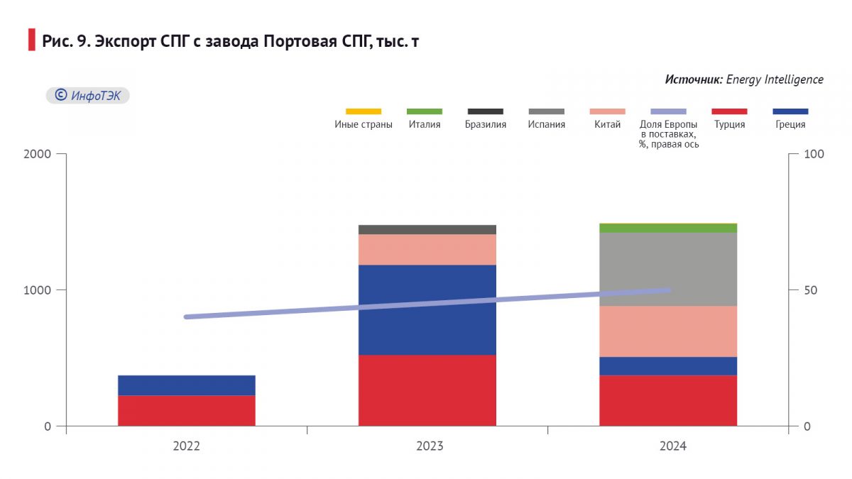Наиболее заметное сокращение наблюдалось в поставках трубопроводного газа – с 12,6% до 5,4%, тогда как удельный вес СПГ, напротив, увеличился с 1% до 4,6%, чему способствовало открытие новых крупных заводов по сжижению газа.