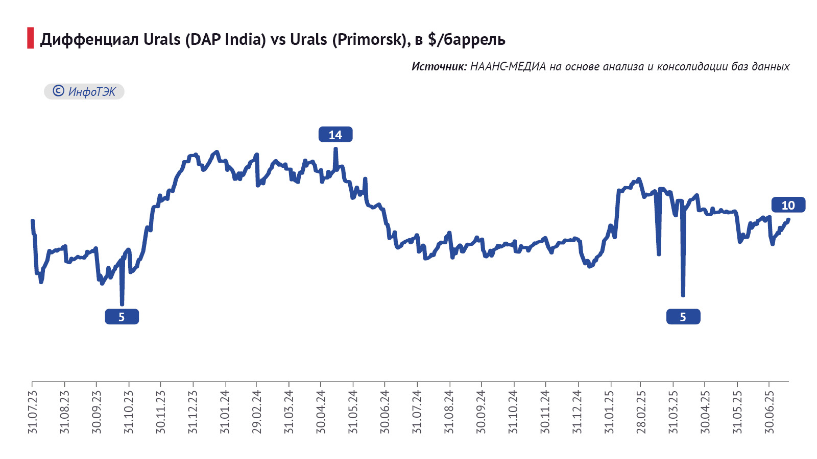При этом основной объем закупаемой Индией нефти формируется за счет приобретения наиболее дисконтированного сорта Urals. В июне 2025 года доля Индии в закупке этого российского сорта составила 54%.