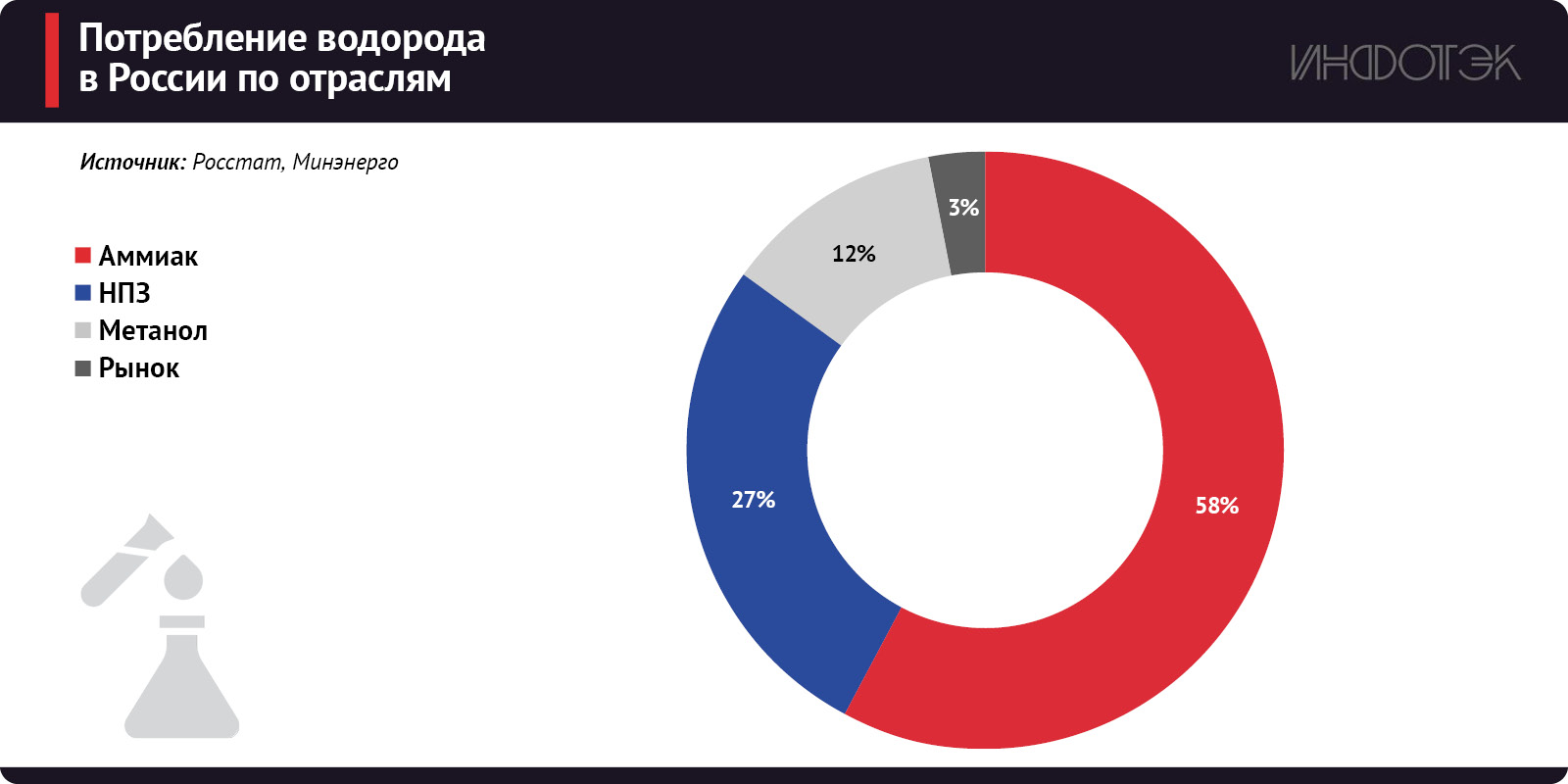 При этом если в Китае более 62% водорода производится из угля путем его газификации, то в России он получается в основном из природного газа методом паровой конверсии. На производство водорода направляется более 28 млрд куб. м природного газа, что составляет порядка 6% от его внутреннего потребления в РФ.